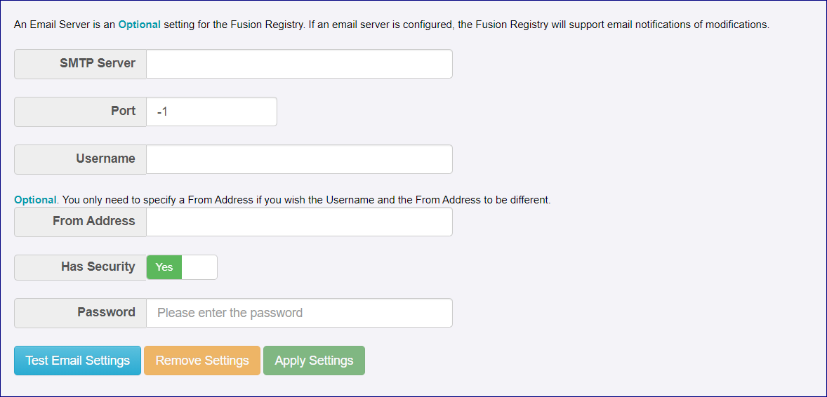 In order to use the Registry, you do not need to set up an email server however, once set up it will support email password reset requests and changes in the Registry (if a user has subscribed to be notified on changes).