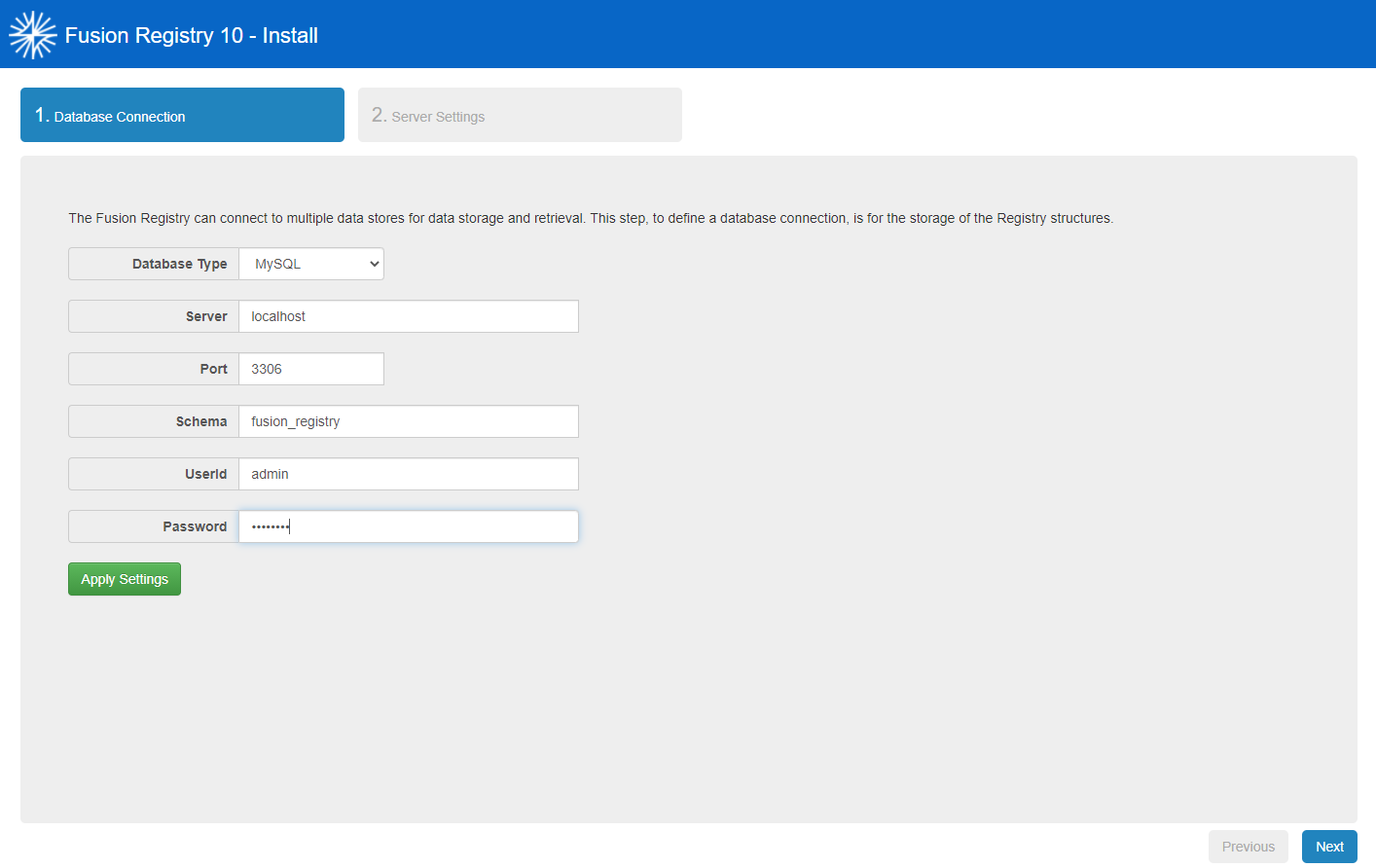 Clicking Apply Settings will test the connection to the database and automatically build all of the tables.