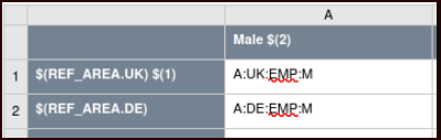 >>> Male A:$(REF_AREA):M:EMP A:$(REF_AREA):M:STU
