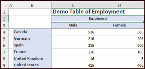 The output table would look like the following:
