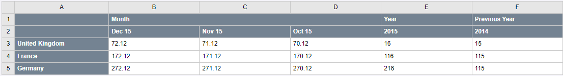 An example of row headings using levels is as follows: