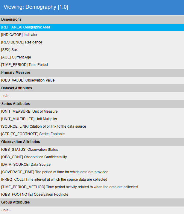 | Structure Type | Standard SDMX Structural Metadata Artefact |