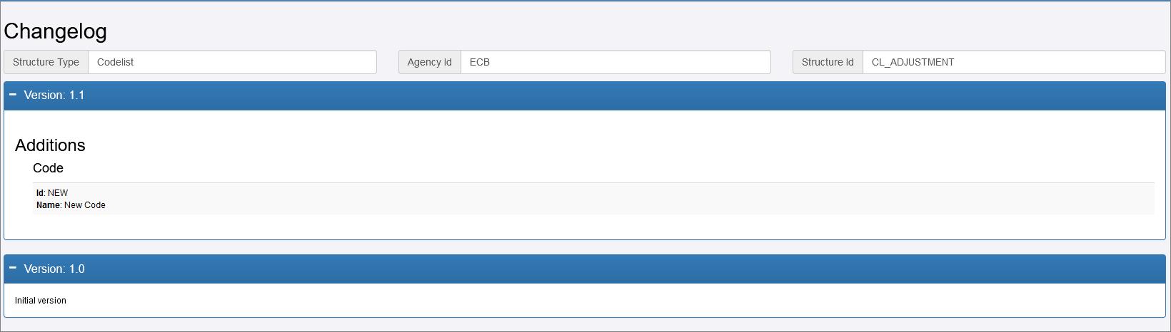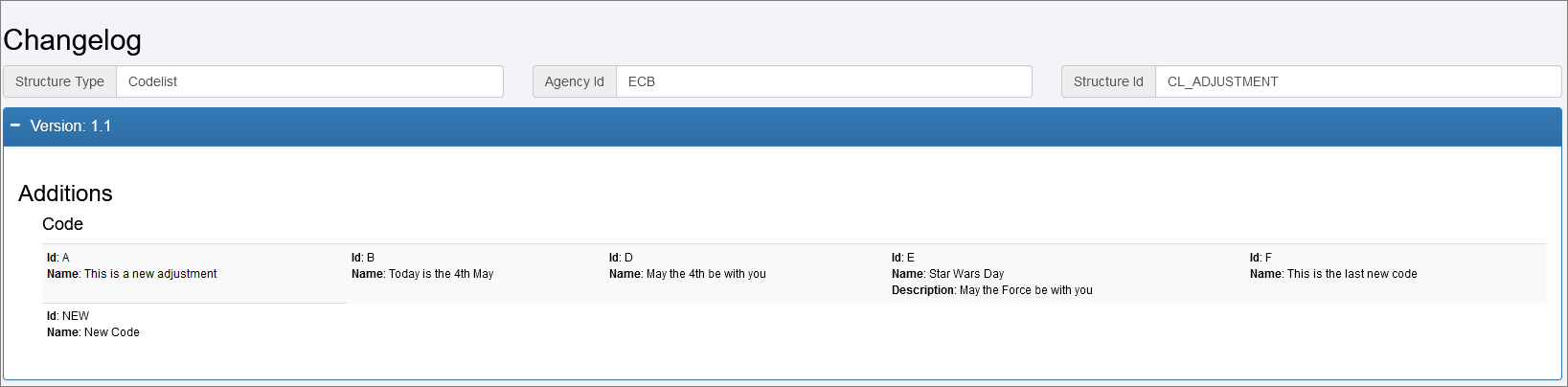 - Additions: Such as codes added to a codelist, or descriptions added to a structure.