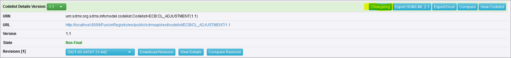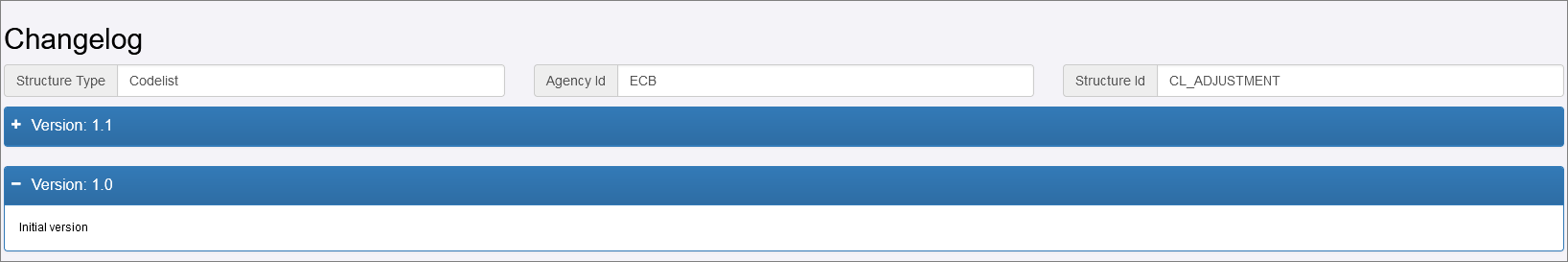 The changelog function allows all of the changes between versions of a single structure to be viewable on a single page. The control to view a changelog is located under the table of structures and can be activated for any structure where more than one version exists in the Registry.