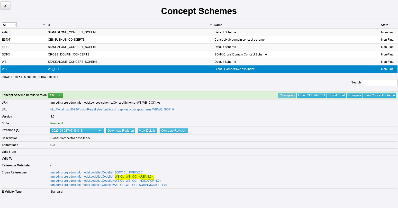 Note that the Cross Reference is a link. If I click, I will be taken to the Concept Scheme, and I can see a Cross Reference to a Codelist.