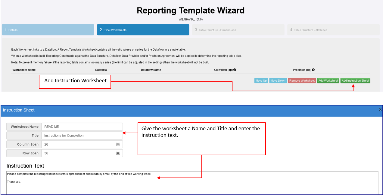 In this example, an Instruction worksheet is created as shown in the image below