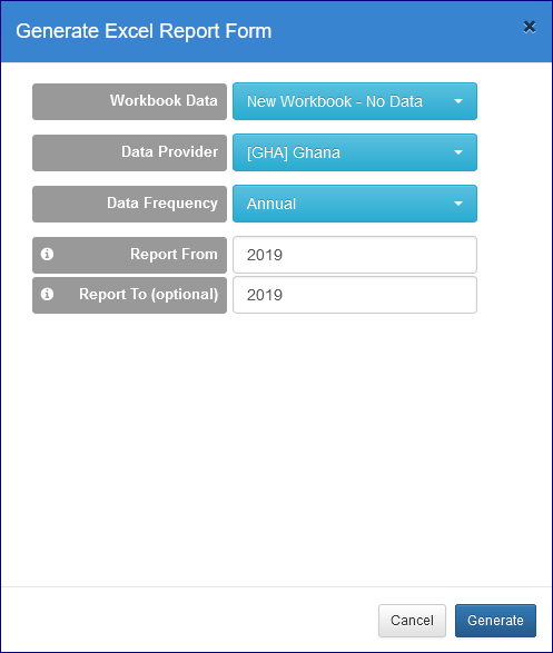 You will note that the Data Provider GHA has been selected, this means that the Constraint attached to the Provision Agreement will be used. The Frequency selected is Annual, so to to report for the whole of 2019, that year is placed on both the From and To dates. Click Generate when done.
