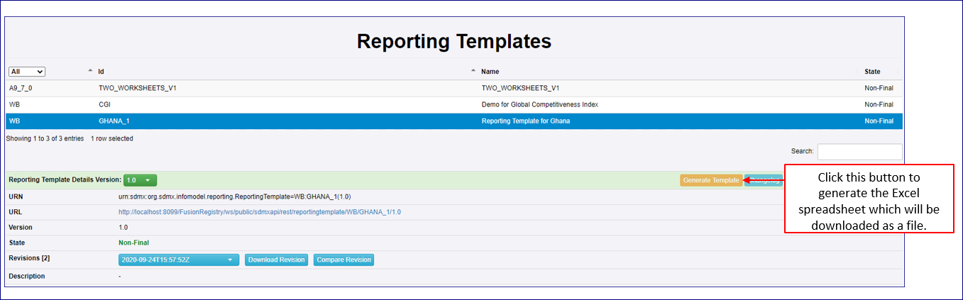 This example shows how the Registry can be used to create an Excel Template for the specific Data Provider. Once the end result is Generated, it could be issued to the Data Provider for completion. Once the Excel spreadsheet has been completed by the Data Provider, Fusion Metadata Registry can be used to validate the data via the Convert data page.