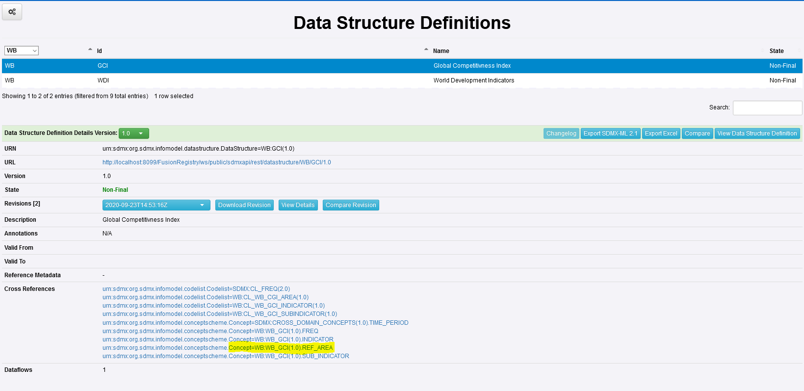 In this example I am going to use the AREA code method to restrict using the code GH (the code for Ghana). If I check the Data Structure, I can see what other structures have been used. In this example I am looking at the Concept as highlighted in the image below.