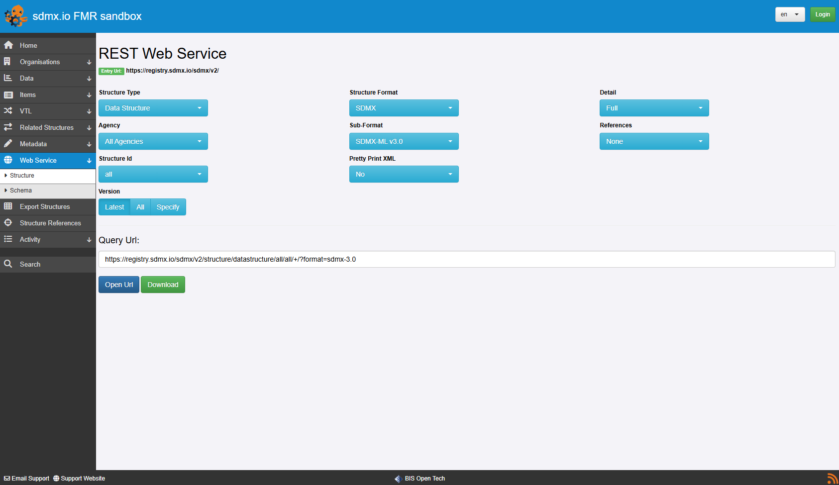 Structures can be obtained using the Web Service option from another Registry. The image below shows a Registry with Web Services and Structure selected.