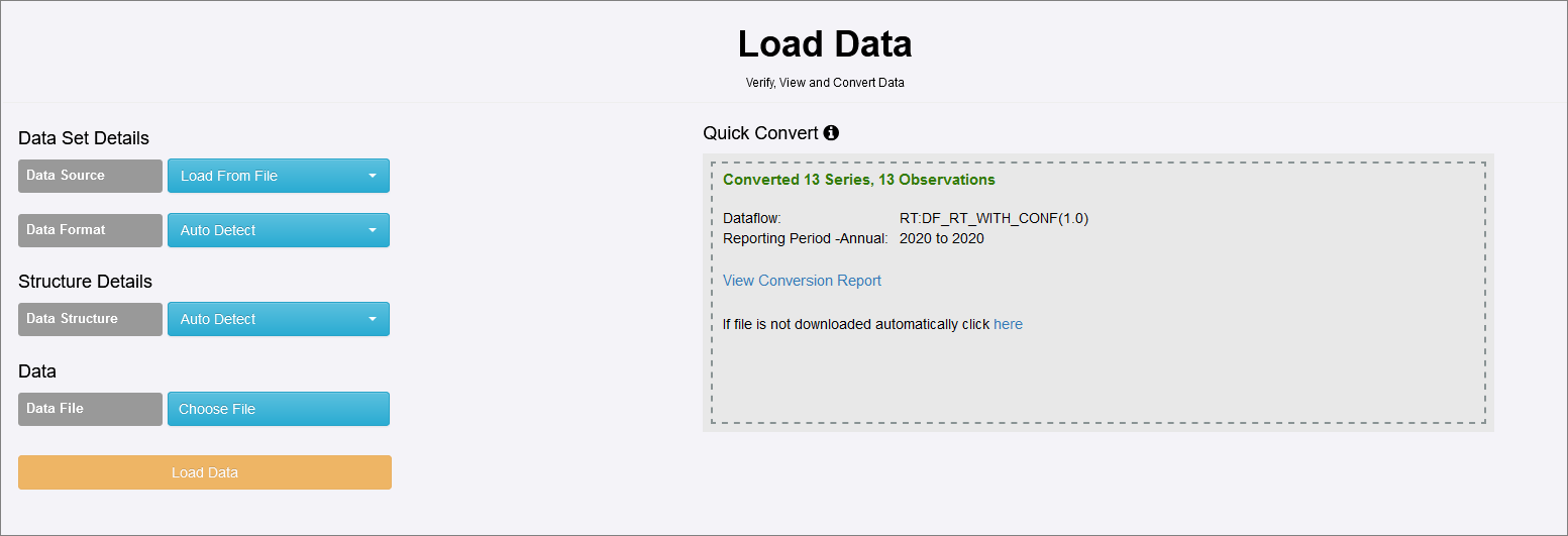 The next step is to convert the spreadsheet into a XML file via either the Load from file option or the quick convert option as shown aside.