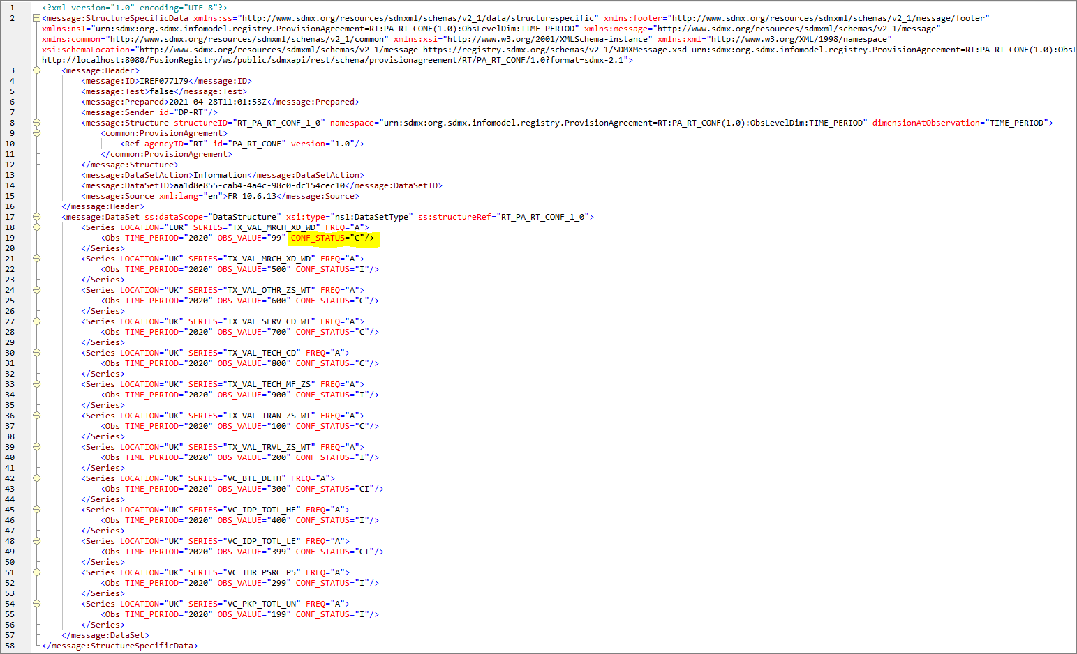If you open the XML file and view using Pretty Print (I am using XMLSpy) you will see that the colour coding has taken affect and the correct codes are included against the Attribute CONF-STATUS.