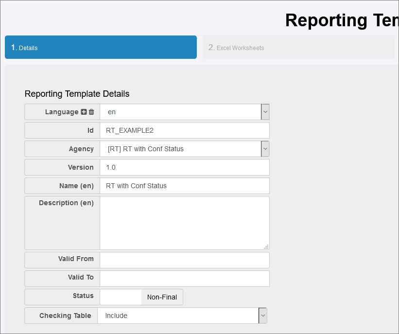 Allows the insertion of an instruction worksheet which will appear (in a separate worksheet in the generated Excel workbook when the Reporting Template is generated). You can use this to provide instructions for completion.