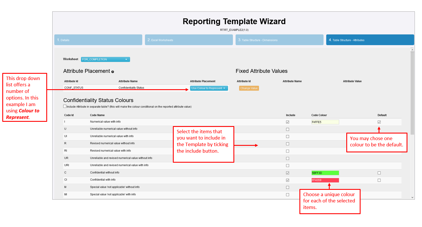 In this example the Data Structure has an Attribute relating to the confidentially status of the reported data. This article assumes that you have a basic understandin of how to create a Template using the GUI as explained in this article - How to create a Reporting Template.