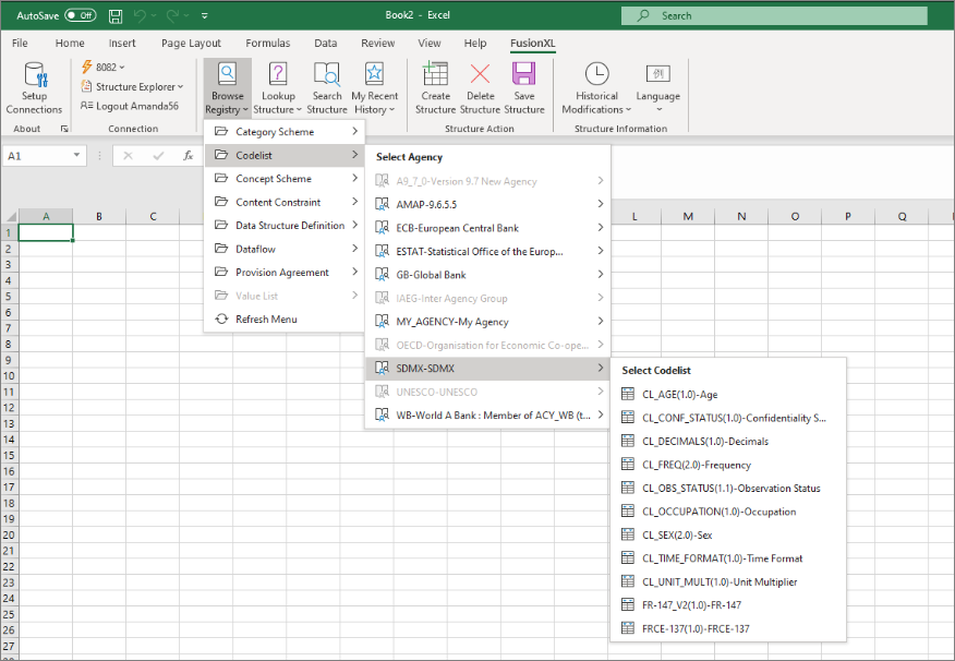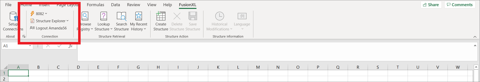 To use the Structure Explorer, you need to have installed the FXL add-in and connected to a Registry from the FusionXL tab in an Excel workbook. Click here to learn how to do that.